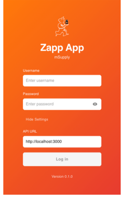 Enter your mSupply user name and password in the Username and Password fields. Then tap on the Login button to login to the app. Your credentials will be checked against those stored on the mSupply server found at the URL entered in step 4.