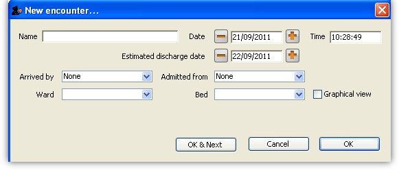 The admission date defaults to the current date and time, but you can change these and the available beds will be updated accordingly. Once you have chosen a bed, click OK or OK & Next.